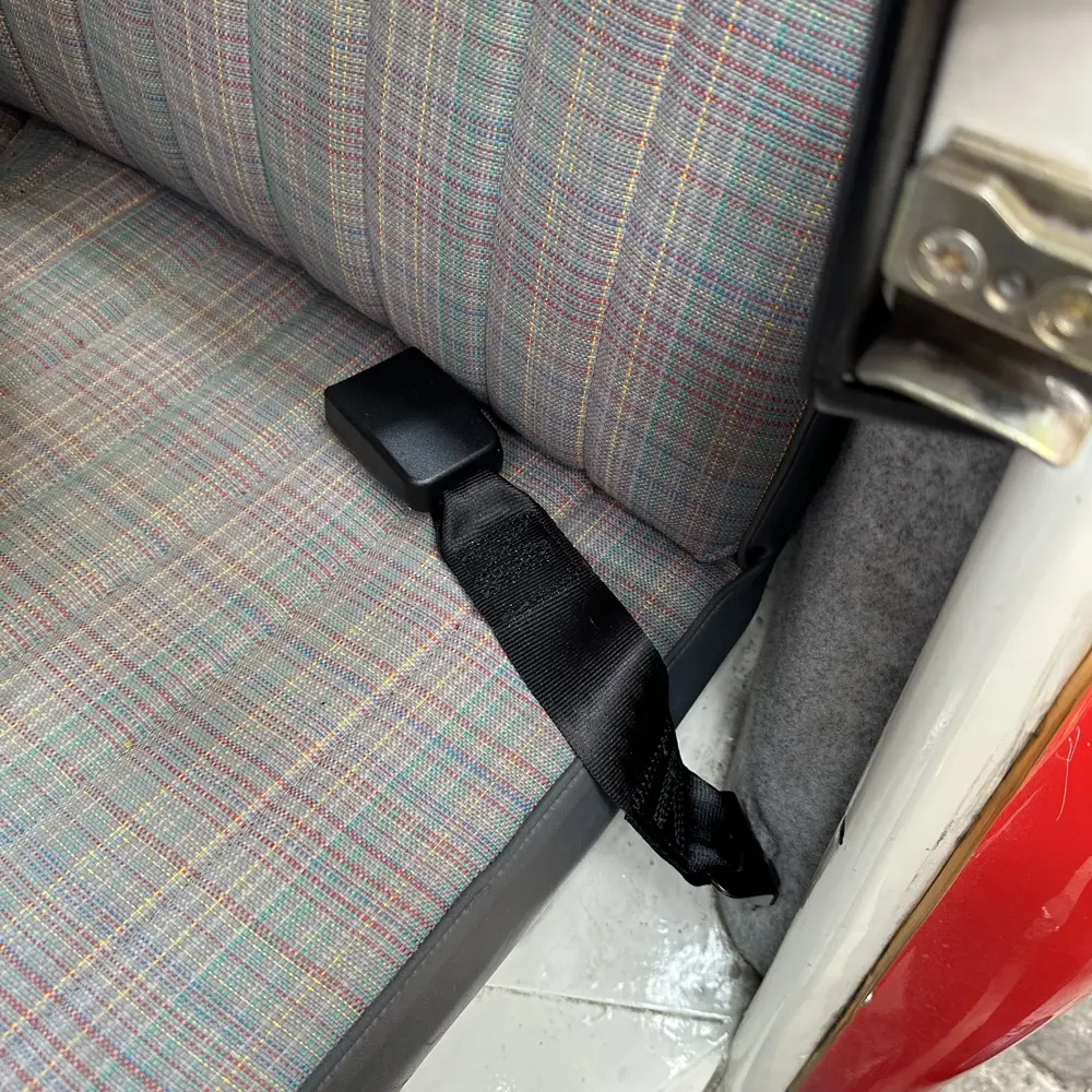 Der moderne Automatikgurt bietet hohen Komfort bei maximaler Sicherheit. Er wird unter der Rückbank verschraubt und kann vollständig in die vorhandene Sitzstruktur integriert werden – ideal für alle, die Wert auf Sicherheit legen, ohne den Originalcharme des 2CV zu beeinträchtigen.